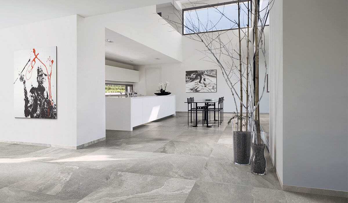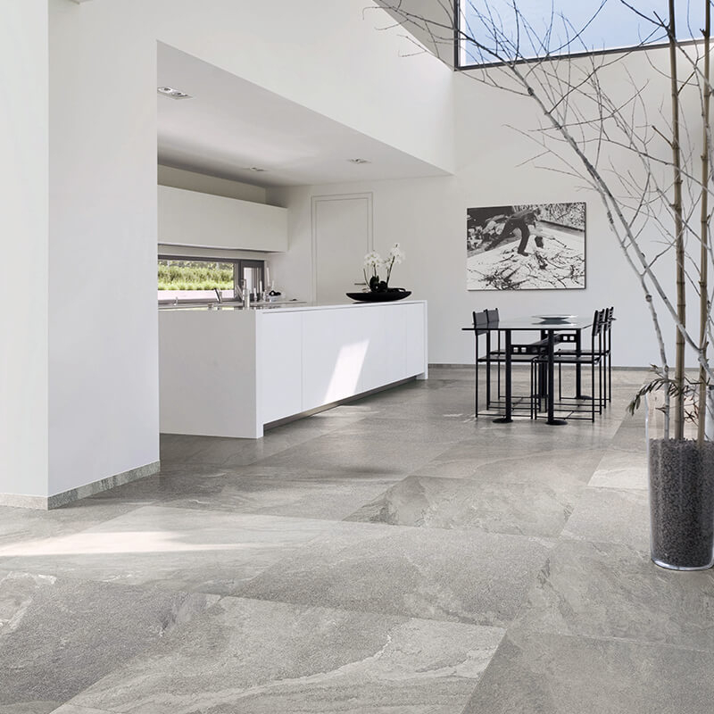 石紋磚擁有天然板岩的原始紋理,所以也稱為板岩磚。石紋磚粗獷耐磨的面感特性,能夠散發沉穩內斂的風格質感,石紋磚所具備的優秀止滑效果,特別推薦使用在浴室磁磚、建案公設及商業空間的大面積地坪上。石紋磚在紋理及面感上的選擇豐富,能夠完美融入現代極簡和工業風之中,這些都是石紋磚受到青睞的材質優勢。