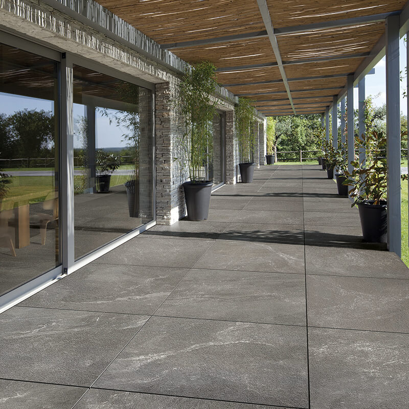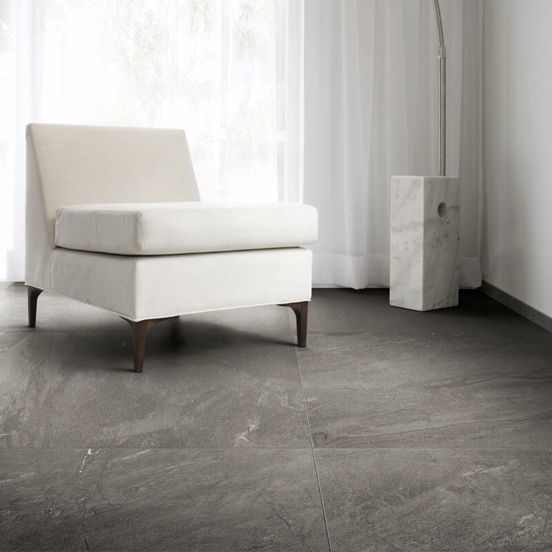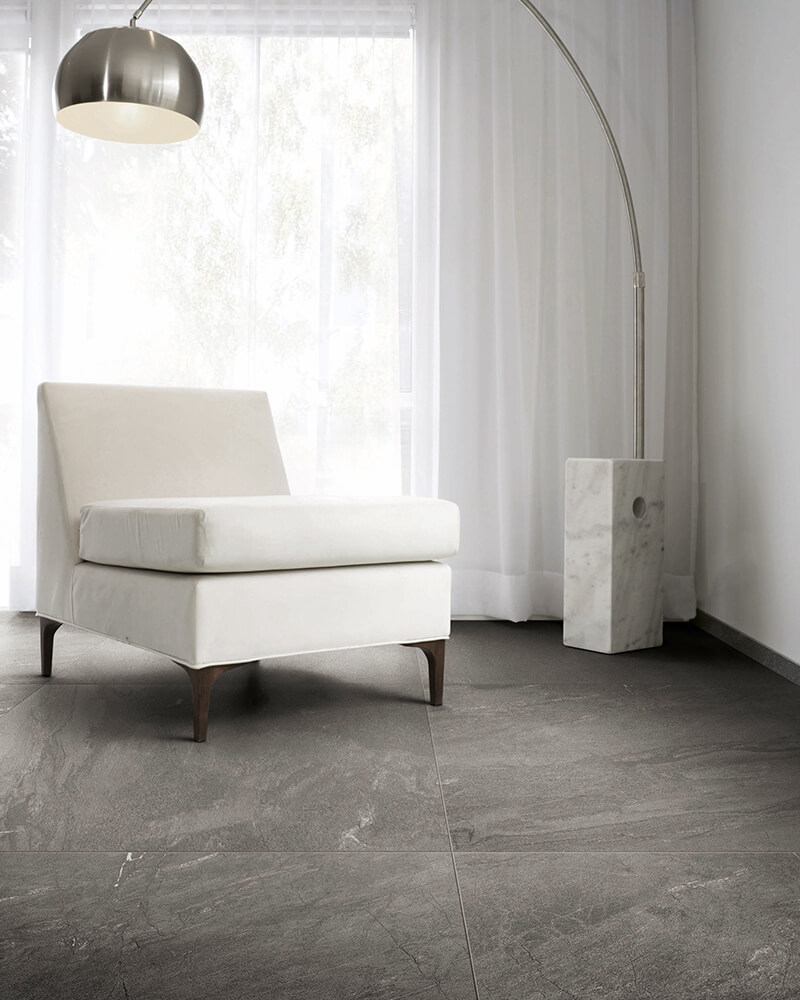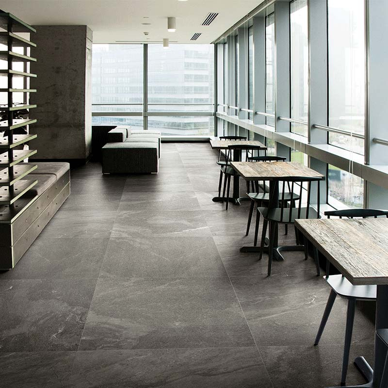 石紋磚擁有天然板岩的原始紋理,所以也稱為板岩磚。石紋磚粗獷耐磨的面感特性,能夠散發沉穩內斂的風格質感,石紋磚所具備的優秀止滑效果,特別推薦使用在浴室磁磚、建案公設及商業空間的大面積地坪上。石紋磚在紋理及面感上的選擇豐富,能夠完美融入現代極簡和工業風之中,這些都是石紋磚受到青睞的材質優勢。
