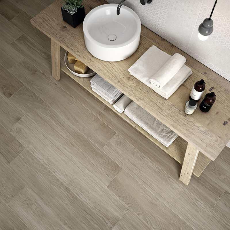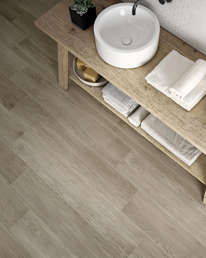 木紋靈感組合而成的磁磚:木紋的優雅和粗陶的簡約。 3 種顏色,賦予自然溫馨的心情,在一個從其高度的陰影變化和豐富的表面圖案中獲得個性的系列中。